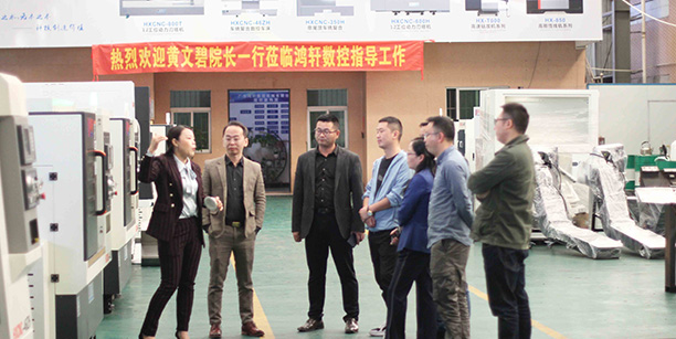 車床部經理詳細的給工職院領導們介紹了我們鴻軒目前正在裝配的HXCNC-46ZH車銑復合4+4、HXCNC-46ZF數控排刀機、HXCNC-550YH動力刀塔車銑復合、HXCNC-850加工中心等車床的常用加工產品類型、尺寸、重量等,一些可加工的參數,以及用在教學方面的優勢。